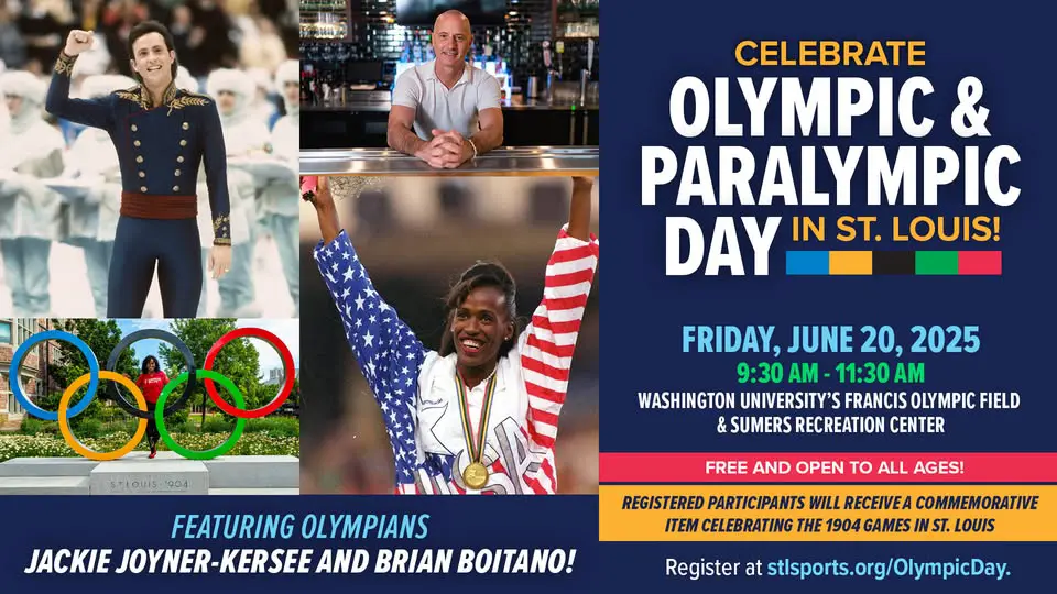 As America’s first Olympic city, St. Louis will mark the occasion in a uniquely memorable way. The free, family-friendly event will feature Olympic-themed activities, an inspiring Q&A with Olympic Gold Medalists Jackie Joyner-Kersee and Brian Boitano, and a community run/walk around the historic 1904 Olympic stadium track alongside Olympians and Paralympians in attendance.