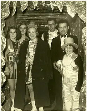 St. Louis April 7, 1936 – L to R: Dorothy Lewis, Josephene Fogassey, Sonja Henie, Len Fogassey, Sam Lewis (father of barrel jumper Buddy), Shirley Reflow.