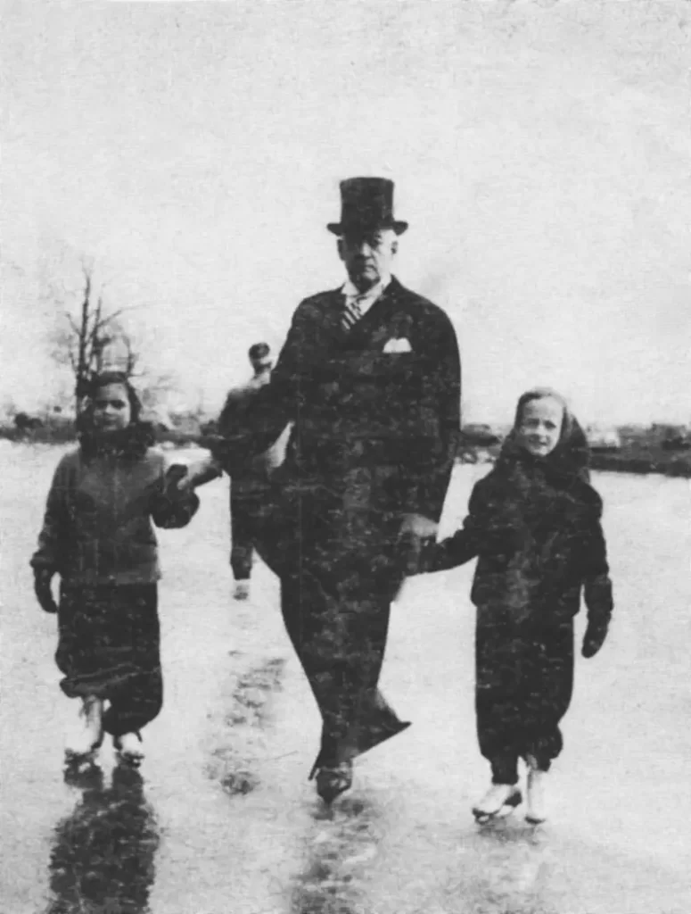1945 – Joseph Forshaw skating in Forest Park with his granddaughters, Nancy Sauer and Anne Stocke.