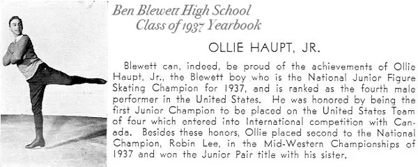 Oliver “Ollie” Haupt Jr. was born in 1891 in St. Louis. He was described by Popular Mechanics in 1940 as “one of America’s outstanding figure skaters”.